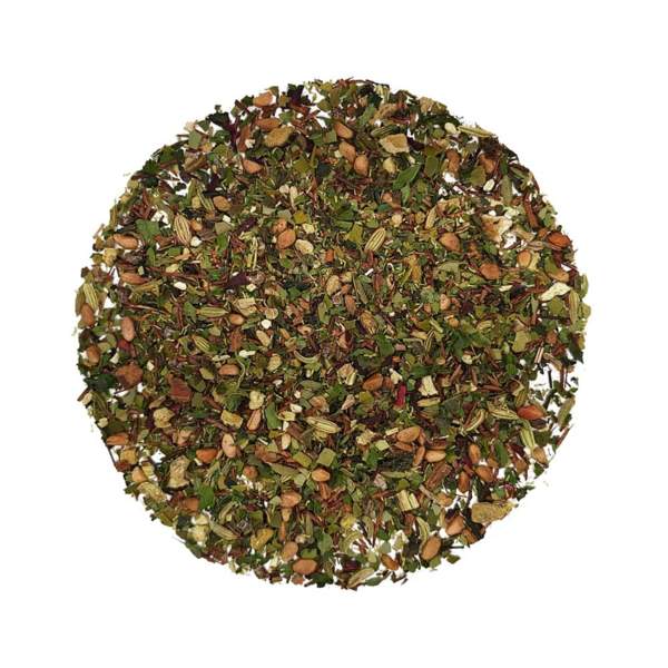 Un rooibos associé au maté, à la spiruline, aux plantes du jardin avec quelques épices pour un cocktail de bienfaits.